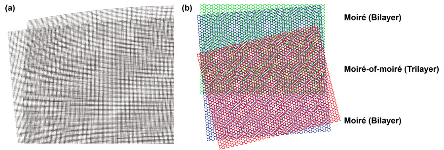 The “moiré effect” refers to a new pattern that emerges when two periodic patterns are superimposed. For example, overlapping mesh fabrics can produce wave-like patterns (see Fig. 1a), and striped shirts on TV screens may display unusual grid effects. In recent years, scientists have discovered that this visual phenomenon can also fundamentally alter the behavior of electrons in materials.
