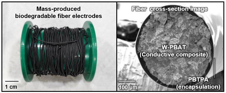 - Resources : Kim, YW., Kim, KS., Park, JH. et al. Fully biodegradable and mass-producible conductive fiber based on tungsten–poly(butylene adipate-co-terephthalate) composite. npj Flex Electron 9, 62 (2025).